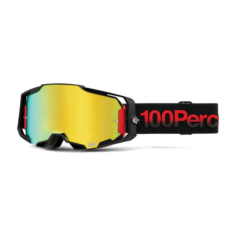 نظارات Armega Dirt Bike و Motocross 100 Percent Armega باللون الأسود/الأحمر - Tzar - عدسات مرآة ذهبية