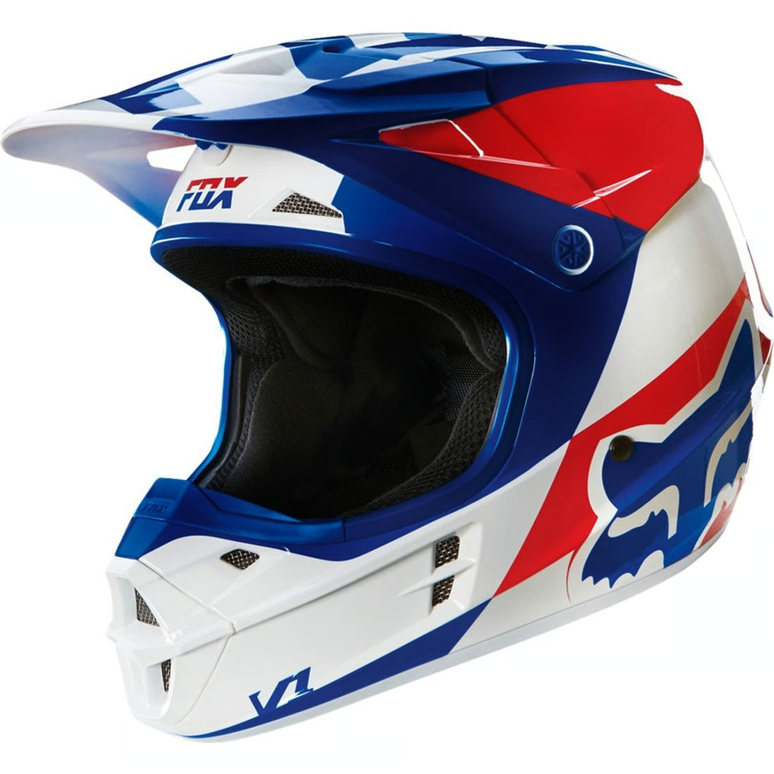 خوذة فوكس ريسينغ موتوكروس V1 باللون الأزرق/الأبيض/الأحمر للطرق الوعرة