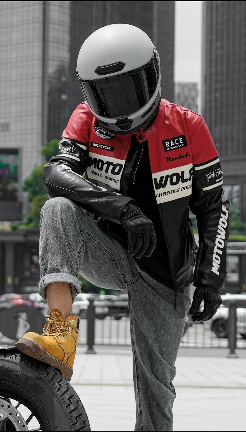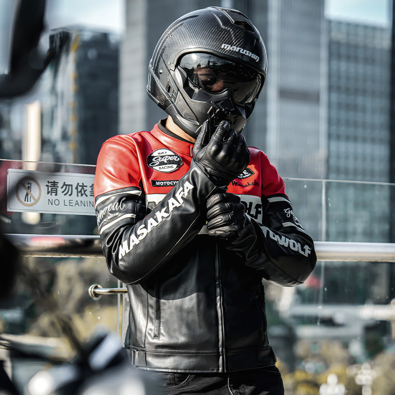 MOTOWOLF JM1 Thermal Leather Motorcycle Jacket Winter Windproof Motorcycling Jacket - Black & Red