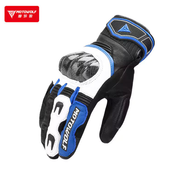 The MOTOWOLF Leather Motorcycle Gloves are crafted for the discerning rider who values both protection and comfort. These gloves are designed to provide excellent durability and flexibility, making them perfect for winter, cycling, and motocross activities.