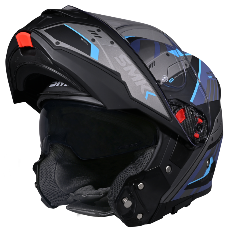 The SMK Gullwing Tekker MA265 (Matt Black / Grey / Blue) is a sophisticated modular helmet engineered to deliver safety, versatility, and style. With double P/J homologation, it is approved for both open-face and full-face use, giving you flexibility depending on the ride. The shell is built using Energy Impact Resistant Thermoplastic (EIRT) and is supported internally by a multi-density EPS lining to absorb impact forces effectively.